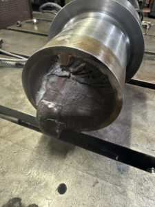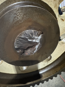 まずは折れた軸がギアの穴に残ったままなのでそれを削り落としていきます。